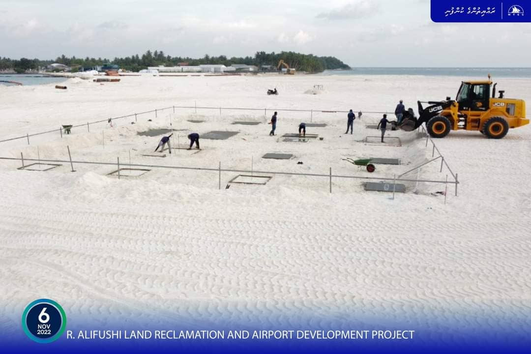 ރ. އަލިފުށީ ބިން ހިއްކުމާއި އެއާޕޯޓް ތަރައްގީ ކުރުމުގެ މަޝްރޫއުގެ ދަށުން، އަލިފާން ނިއްވާ އިމާރާތުގެ ކޮންކްރީޓް މަސައްކަތްތައް ފަށައިފިކަމަށް އެމަސައްކަތުގެ ކޮންޓެކްޓަރު އެމްޓީސީސީން ބުނެފިއެވެ.