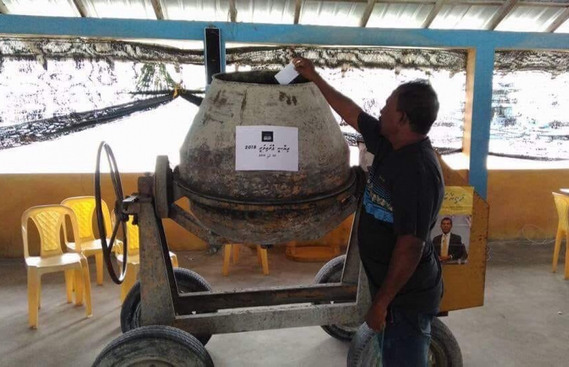 މީހަކު އުވަގަށާ މެޝިނަށް ވޯޓް ކަރުދާސް އަޅަނީ