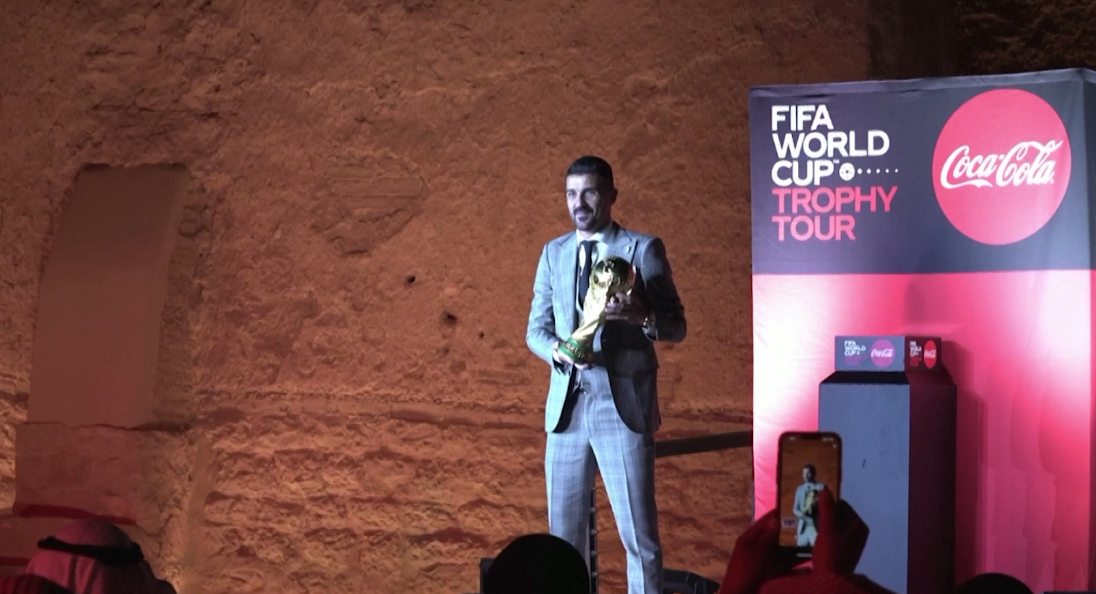 ވޯލްޑް ކަޕް ޓްރޮފީ ޓުވަރގެ ތެރެއިން ރިޔާޒަށް ޓްރޮފީ ގެންދިޔައީ ހުކުރު ދުވަހުއެވެ. ޓްރޮފީއާއެކު 2010 ވަނަ އަހަރުގެ ވޯލްޑް ކަޕް ކާމިޔާބުކުރި ސްޕެއިންގެ ޑޭވިޑް ވިލާވެސް ވަނީ ގޮސްފައެވެ. ވިލާ ވަނީ ރިޔާޒްގައި އޮތް ޚާއްސަ އިވެންޓެއްގައި ޓްރޮފީ ދައްކާލާފައެވެ. ސައޫދީއަކީ މުބާރާތުގެ ކުރިން ވޯލްޑް ކަޕް ޓްރޮފީ ގެންދާ ފަހު ޤައުމެވެ.