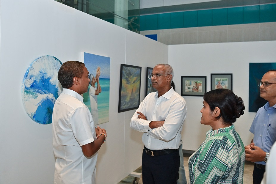 މިގޮތުން ނެޝެނަލް ސެންޓަރ ފޮރ ދި އާރޓްސްއިން އިންތިޒާމުކޮށްގެން ސީ ޕްލޭން ޓަރމިނަލްގައި އާޓިސްޓުންގެ ހުނަރު ދައްކާލުމަށް މިހާރު ކުރިޔަށްގެންދާ އެގްޒިބިޝަން ރައީސުލްޖުމްހޫރިއްޔާ އިބްރާހީމް މުޙައްމަދު ޞާލިޙް ވަނީ ބައްލަވާލައްވައިފައެވެ.