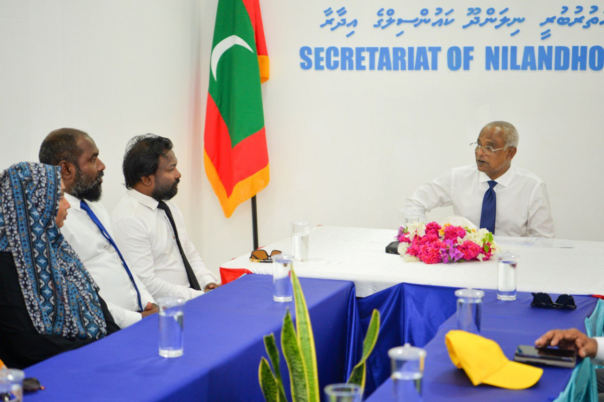 ރައީސުލްޖުމްހޫރިއްޔާ އިބްރާހީމް މުހައްމަދު ސާލިހު، ހުވަދުއަތޮޅު އުތުރުބުރީ ނިލަންދޫ ކައުންސިލާއި އެރަށުގެ އަންހެނުންގެ ތަރައްގީއަށް މަސައްކަތްކުރާ ކޮމިޓީގެ މެންބަރުންނާ ބައްދަލުކުރައްވައި، ރަށުގެ ތަރައްގީއަށްޓަކައި ބޭނުންވާ ކަންކަމާ ގުޅޭގޮތުން މަޝްވަރާކުރައްވައިފިއެވެ.