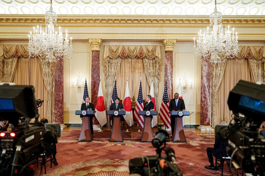 އެމެރިކާ އަދި ޖަޕާންގެ ޑިފެންސް މިނިސްޓަރުންނާއި ފޮރިން މިނިސްޓަރުން ގުޅިގެން ބޭއްވި ނޫސްވެރިންގެ ބައްދަލުވުމުގެ ތެރެއިން