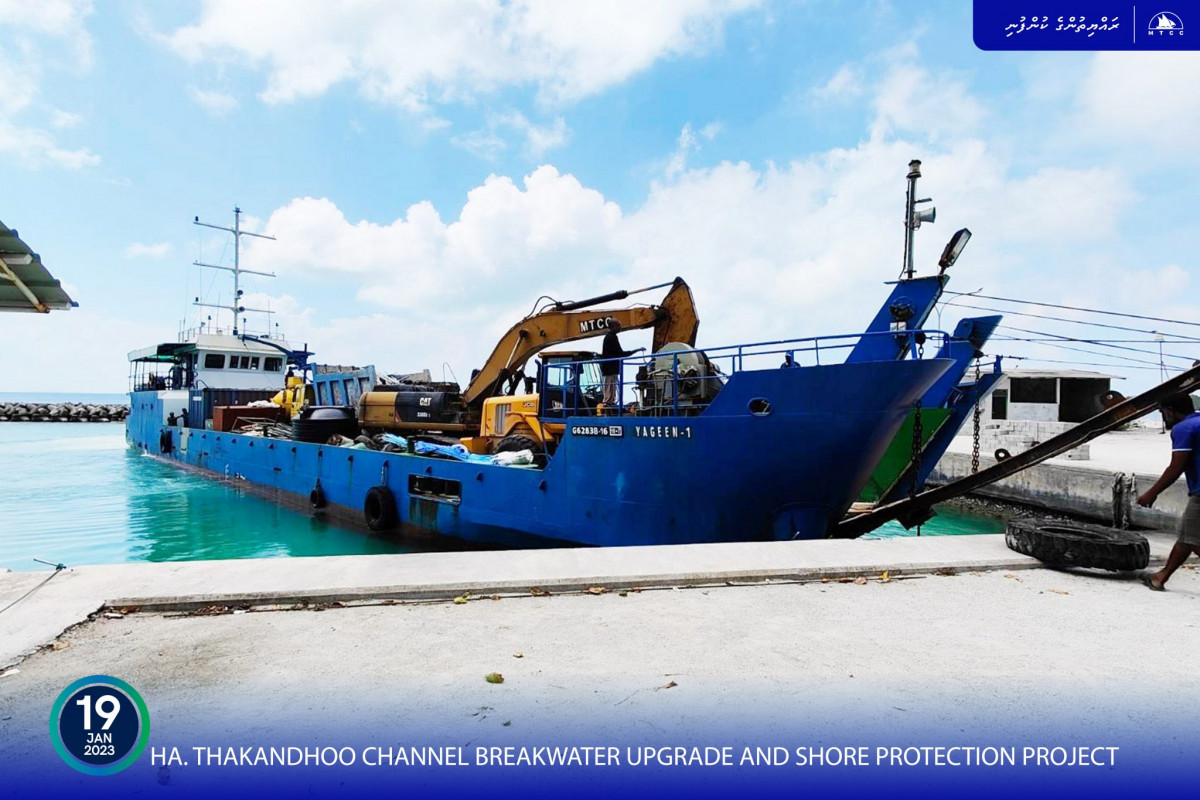 The channel breakwater upgrade and shore protection project in Thakandhoo island of Haa Alif atoll, has been mobilized.