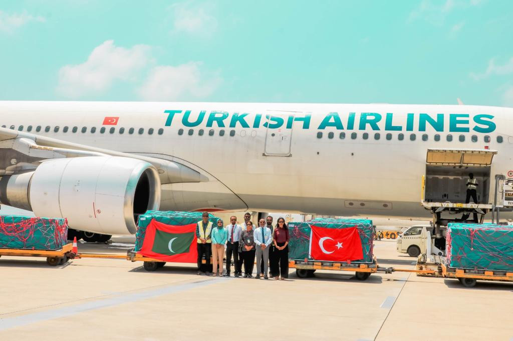 The aid was seen off from Velana International Airport to Turkey by officials from the Ministry of Foreign Affairs and the Honorary Consulate of Turkey in Maldives.
