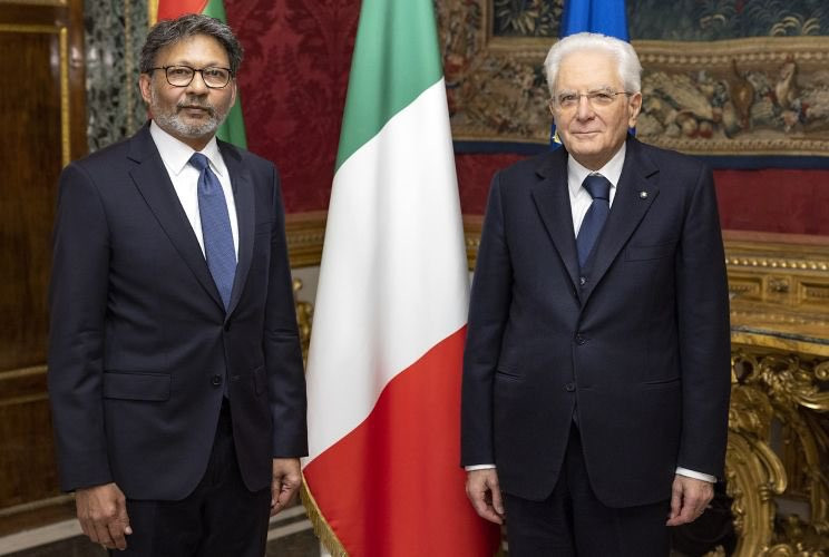 The Maldivian Ambassador presented his letter of credence at a ceremony held at the Quirinale Palace in Rome, Italy, on Thursday.