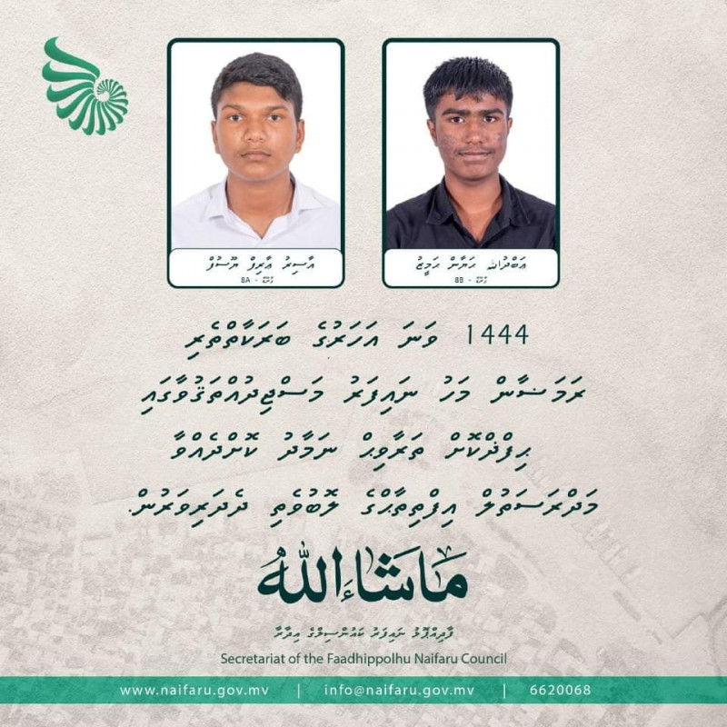 މިފަހަރު ނައިފަރުގެ މަސްޖިދުއްތަޤުވާގައި އިމާމުވެ ތަރާވީސް ކުރާނީ އެ ރަށު މަދުރަސަތުލް އިފްތިތާހުގެ ގްރޭޑް 8 ގައި ކިޔަވަމުން އަންނަ އުމުރުން 14 އަހަރުގެ އަބްދުﷲ ހަޔާން ހަމީދު އާއި އާސިރު އާރިފު ޔޫސުފްއެވެ.