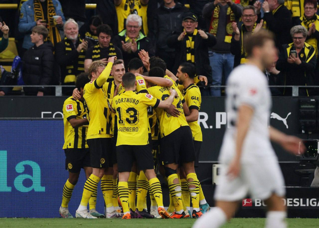 ލީގުގައި މައިންޒާ ދެކޮޅަށް ބަޔާން ކުޅުނު މެޗުން ބަލިވުމުން، އެއިންޓްރަކްޓް ފްރޭންކްފާޓް ބަލިކޮށް އަލުން އެއް ވަނަ އަށް އަރަން ލިބުނު ފުރުސަތުގައި ޑޯޓްމަންޑުން ވަނީ 4-0 އިން ފްރޭންކްފާޓް ބަލިކޮށްފަ އެވެ. ޑޯޓްމަންޑުގެ ދަނޑުގައި ކުޅުނު މެޗު ފަށައިގެން 19 ވަނަ މިނެޓުގައި އެ ޓީމުން ވަނީ ލީޑު ނަގައިފަ އެވެ. ހޫލިއަން ބްރާންޓް ތަނަވަސްކޮށްދިން ފުރުސަތެއްގައި އެ ޓީމަށް ލީޑު ނަގައިދިނީ އިންގްލެންޑުގެ ޒުވާން ކުޅުންތެރިޔާ ޖޫޑް ބެލިންހަމް އެވެ. ފުރަތަމަ ހާފު ނިމުމުގެ ކުރިން ޑޯޓްމަންޑުން ވަނީ އިތުރު ދެ ލަނޑު ޖަހައިފަ އެވެ. ދެ ވަނަ ލަނޑު ޖަހައި ޑޯޓްމަންޑުގެ ލީޑު ފުޅާކޮށްދިނީ 24 ވަނަ މިނެޓުގައި ޑޮނިއެލް މާލެން އެވެ. އޭގެ ފަހުން 41 ވަނަ މިނެޓުގައި ޑޯޓްމަންޑުގެ ތިން ވަނަ ލަނޑު ޖެހީ ޖަރުމަނުގެ މެޓްސް ހަމެލްސް އެވެ. ޑޯޓްމަންޑުގެ ހަތަރު ވަނަ ލަނޑު ޖެހީ ދެ ވަނަ ހާފުގަ އެވެ. މެޗުގެ 66 ވަނަ މިނެޓުގައި އެ ލަނޑު ޖެހީ ދެ ވަނަ ލަނޑު ވެސް ޖެހި މާލެން އެވެ.