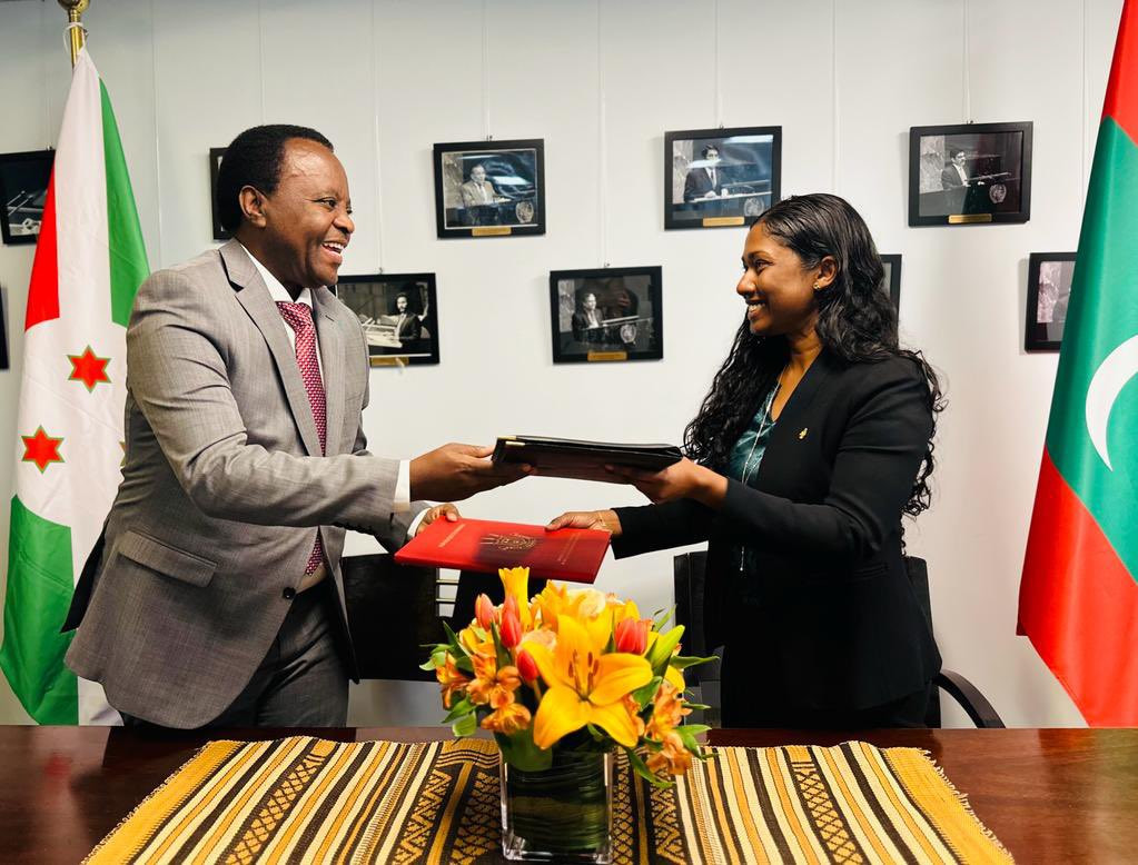 During the discussions at the signing ceremony, Permanent Representative Thilmeeza thanked the Government of Burundi for its commitment towards strengthening the existing bilateral relations between the two countries and conveyed hope that the signing of this agreement will increase avenues for engagement and people to people contact between the Maldives and Burundi.
