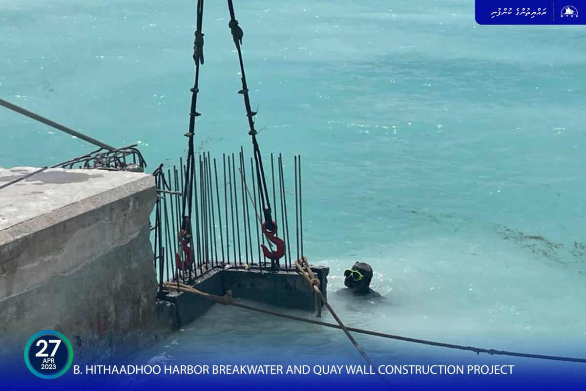 Maldives Transport and Contracting Company (MTCC) has disclosed that the harbor breakwater and quaywall construction project of Hithaadhoo island in Baa atoll is well underway.