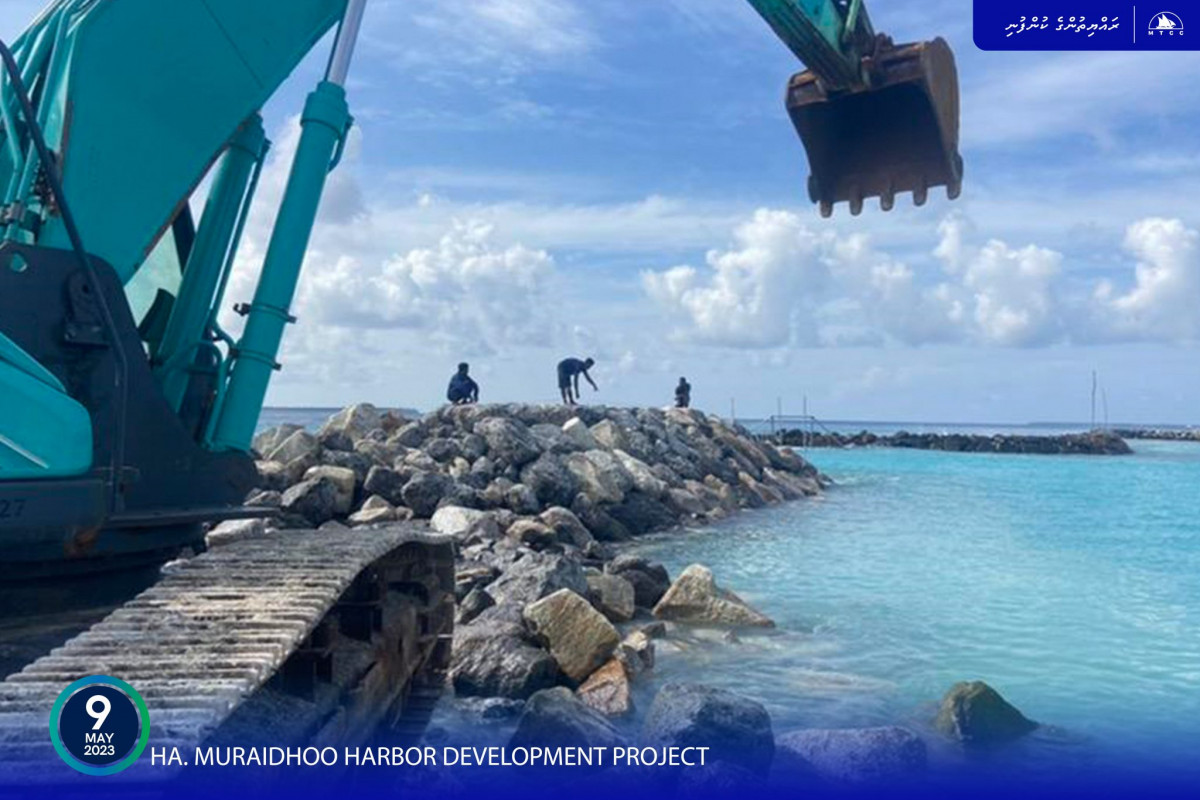 The Maldives Transport and Contracting Company (MTCC) has commenced breakwater profiling works for Ha. Muraidhoo Harbor Development Project.