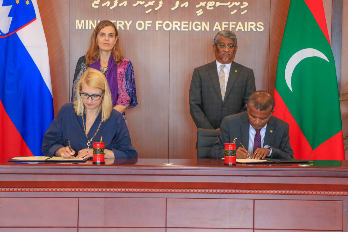 The MoU was signed by Dr. Hussain Niyaaz, Secretary of Economic Cooperation, on behalf of the Government of Maldives, and Mateja Norčić Štamcar, Political Director at the Ministry of Foreign and European Affairs, on behalf of the Republic of Slovenia.