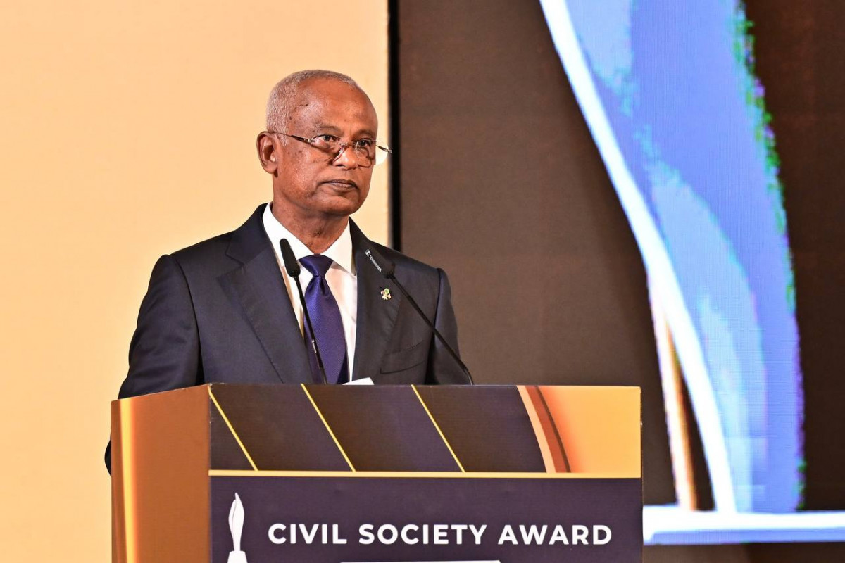 ރައީސް ސާލިޙު މިހެން ވިދާޅުވީ ސިވިލް ސޮސައިޓީ އެވޯޑް ދިނުމުގެ ޖަލްސާގައި ވާހަކަފުޅުދައްކަވަމުންނެވެ.