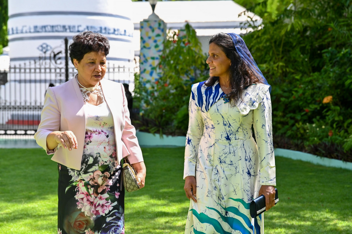 ރައީސުލްޖުމްހޫރިއްޔާގެ އަނބިކަނބަލުން ފަޒްނާ އަޙްމަދާއި، ސޭޝެލްސްގެ ރައީސްގެ އަނބިކަނބަލުން ލިންޑާ ރާމްކަލާވަން ގެ މިބައްދަލުކުރެއްވުމުގައި ދެބޭފުޅުން ވަނީ، ކުޑަކުދިންނަށް ރައްކާތެރިކަން ދިނުމާއި އަދި އިޖުތިމާޢީ ދާއިރާއިން ހުރި ގޮންޖެހުންތަކަށް ޙައްލެއް ހޯދުމަކީ އެކަމުގެ ސަބަބުން މުޖުތަމަޢަށް ފައިދާތައްކުރޭނެ ކަމެއްކަން ފާހަގަކުރައްވާއެވެ.