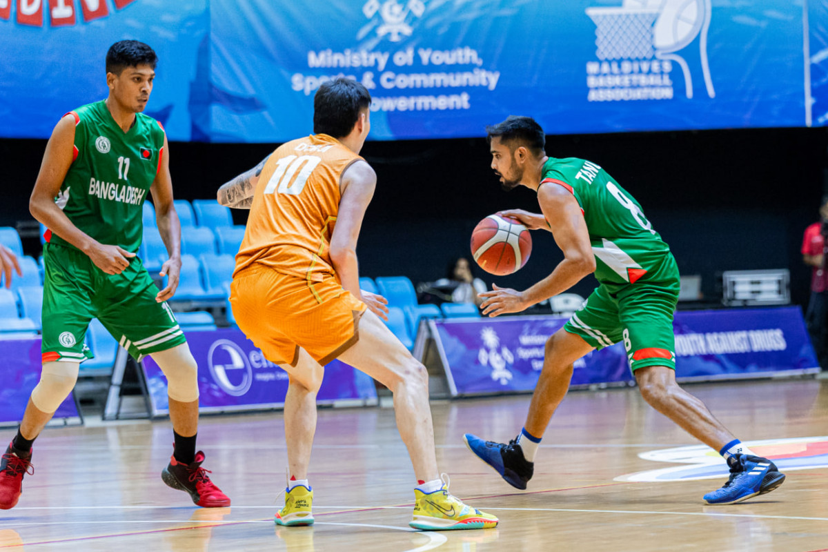 ރާއްޖޭގައި މިހާރު ކުރިއަށްދާ ފައިވް ނޭޝަންސް ބާސްކެޓުބޯޅަ މުބާރާތުގައި މިއަދު ހަވީރު ބޫޓާން ބަލިކޮށް ބަންގްލަދޭޝް ސެމީ ފައިނަލާ ގާތަށް ޖެހިލައިފިއެވެ.