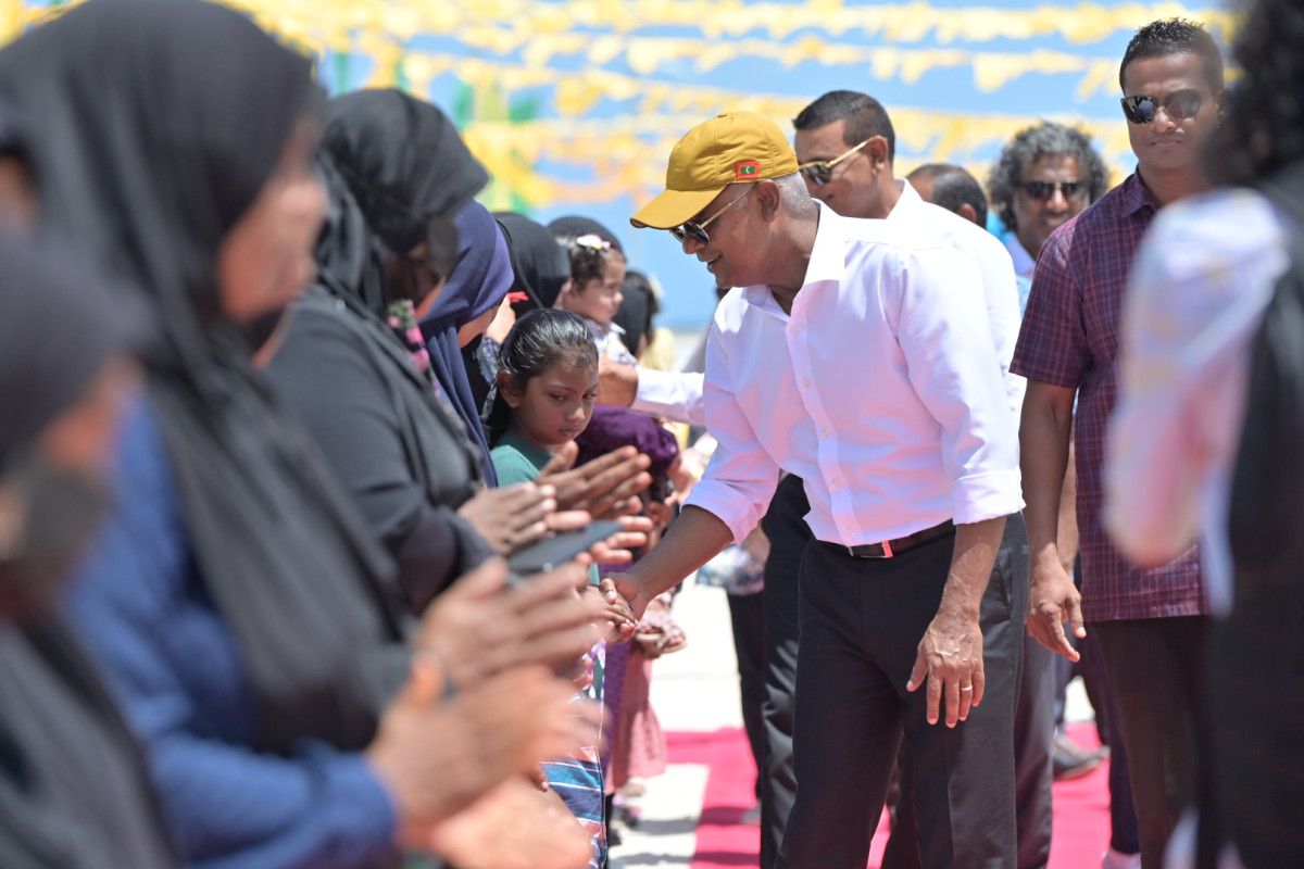ރައީސަށް ކޮމަންޑޫ އާއި މަރޮށިން ވެސް ވަނީ ހޫނު މަރުހަބާއެއް ދަންނަވާފައެވެ. ދެން ރައީސް ވަޑައިގަންނަވާނީ އެ އަތޮޅުގެ ނޫމަރާއަށެވެ.