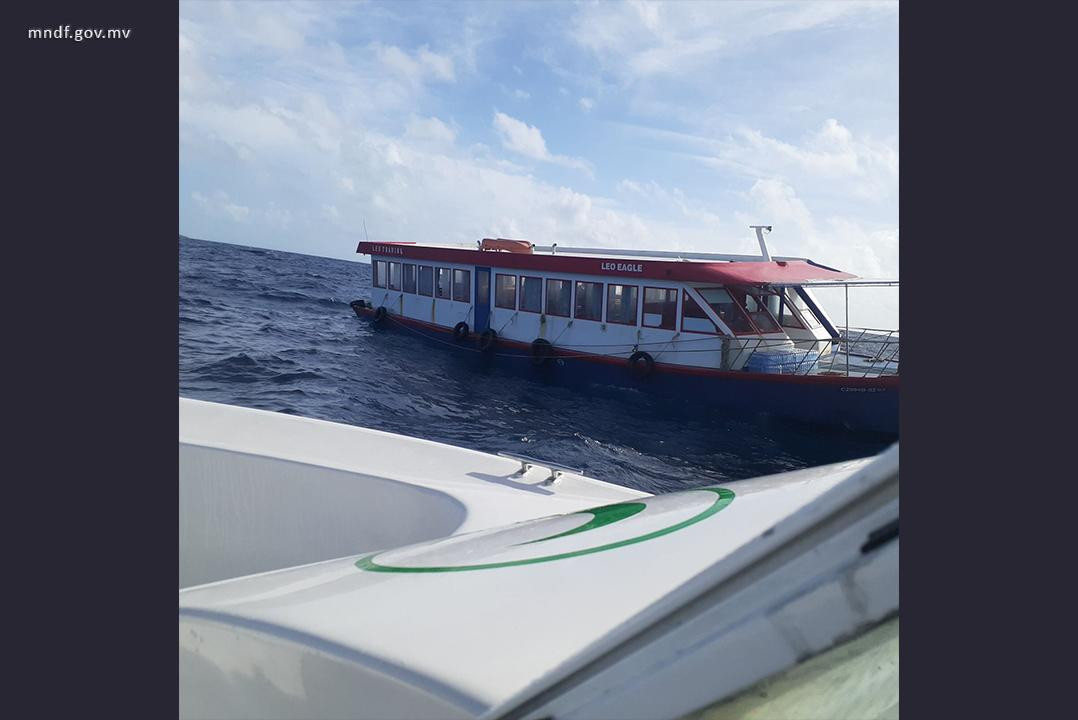 ހއ އަތޮޅުގެ ރަށްތަކަށް ދަތުރުކުރާ ލިއޯ ޓްރޭޑިންގގެ މި ފެރީ، ހއ. ގައްލަންދޫގެ 3 ނޯޓިކަލް މޭލު ބޭރުން އިންޖީނު ހުއްޓިގެން އުޅޭކަމުގެ މައުލޫމާތު އެމްއެންޑީއެފް ނޮދަން އޭރިއާ ކޮމާންޑް ކޯސްޓްގާޑް ފަސްޓް ސްކޮޑްރަންއަށް ލިބިފައިވަނީ މިއަދު 15:14 ހާއިރެވެ. މިކަމުގެ މައުލޫމާތު ލިބުމާއެކު، އެމްއެންޑީއެފް ނޮދަން އޭރިއާ ކޮމާންޑް ކޯސްޓްގާޑް ފަސްޓް ސްކޮޑްރަންގެ ސީ އެމްބިއުލާންސް، އެހީތެރިކަން ފޯރުކޮށްދިނުމަށްޓަކައި ފެރީ އޮތް ސަރަހައްދަށް ދަތުރުކޮށްފައިވާ ކަމަށް އެމްއެންޑީއެފުން ބުންޏެވެ.