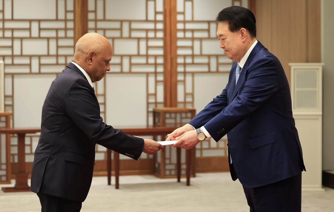 Ambassador Sobir presented his Letters of Credence President of the Republic of Korea Yoon Suk Yeol as the new non-resident ambassador of Maldives, during a ceremony held at the Yongsan Presidential Office in Seoul on Thursday.