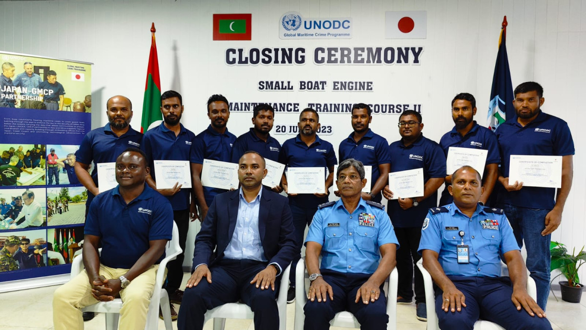 ދިވެހި ފުލުހުންގެ ޚިދުމަތާއި ޔޫ.އެން.އޯ.ޑީ.ސީ ގުޅިގެން ކުރިއަށް ގެންދިޔަ ”ސްމޯލް ބޯޓު އިންޖީން މެއިންޓަނަންސް ޓްރެއިނިންގ ކޯސް 2” ނިންމުމުގެ ރަސްމިއްޔާތު ބާއްވައިފިއެވެ.