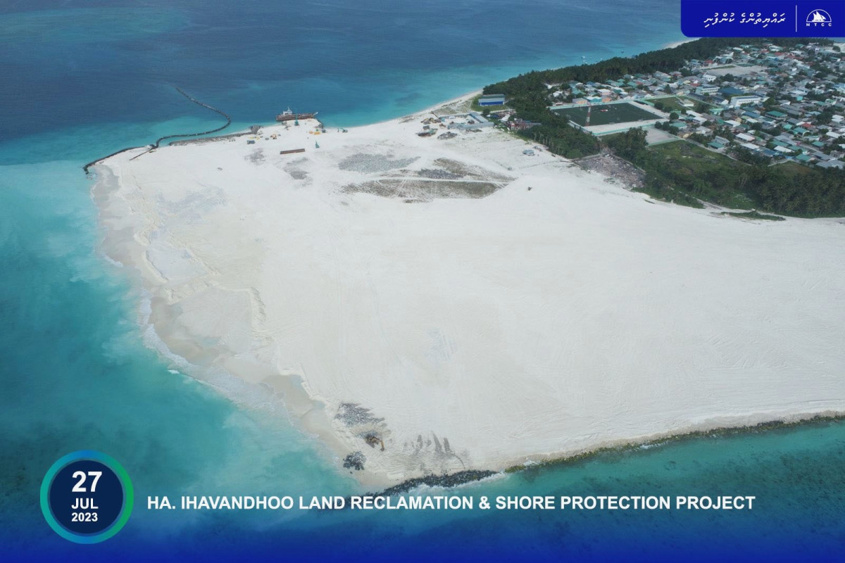 މިމަސައްކަތް އަލުން ޖުލައި 12 ވަނަ ދުވަހު ފަށާފައިވާއިރު ޖުލައި 27 ވަނަ ދުވަހު އެމްޓީސީސީން ބުނީ އިހަވަންދޫގެ ބިން ހިއްކާ ނިމިފައިވާކަމަށެވެ. މި މަޝްރޫޢުގެ ގޮނޑުދޮށް ހިމާޔަތްކުރުމަށް ބޭނުންވާ ހުރިހާ ބޮޑުހިލަތަކެއްވެސް ވަނީ ސައިޓަށް ގެންދެވި އަންލޯޑް ކުރެވިފައިކަމަށް އެމްޓީސީސީން ބުނެއެވެ. ގޮނޑުދޮށް ހިމާޔަތްކުރުމުގެ މަސައްކަތުގެ %54 ފުރިހަމަކުރެވިފައިވާއިރު، މުޅި ޕްރޮޖެކްޓްގެ %75 މަސައްކަތް ވަނީ މިހާރު ނިމިފައެވެ.