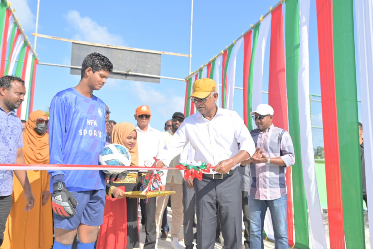ރައީސުލްޖުމްހޫރިއްޔާ އިބްރާހީމް މުހައްމަދު ޞާލިހު ށ.މިލަންދޫގެ ފުޓްބޯޅަ ދަނޑާއި ފެނަކައިގެ އައު އޮފީސް ހުޅުވައިދެއްވައިފިއެވެ.