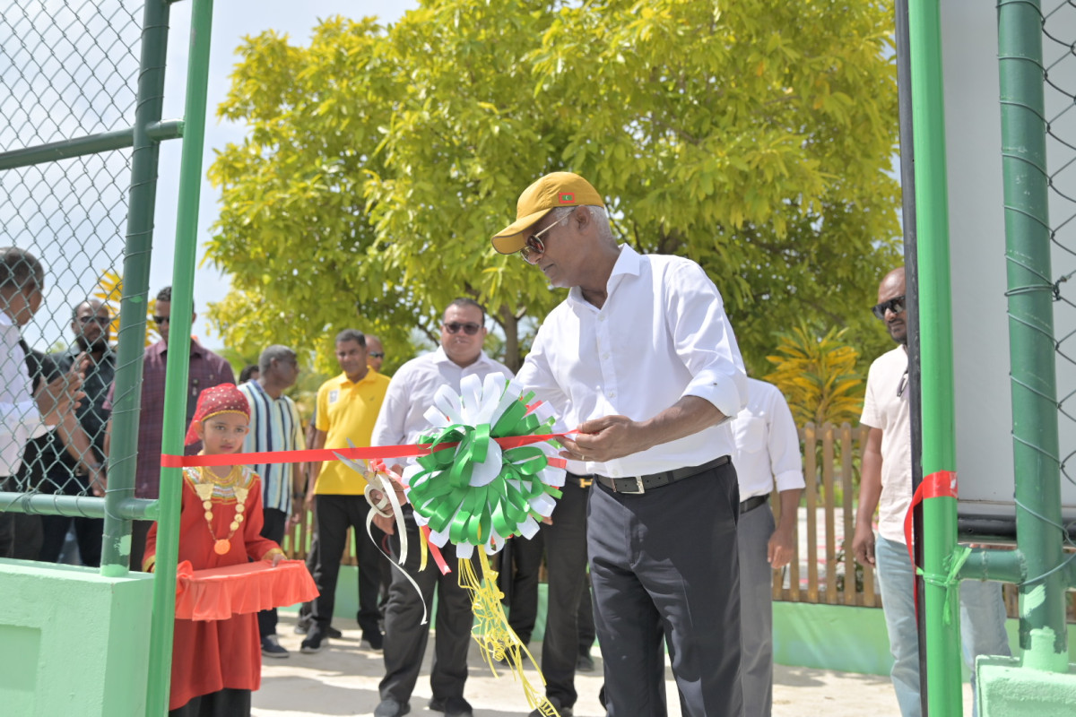 ބަނޑިދޫގައި ސަރުކާރުން ތަރައްގީކޮށްފައިވާ އައުޓްޑޯ ޖިމާއި ވޮލީކޯޓު، ރައީސުލްޖުމްހޫރިއްޔާ ވަނީ ހުޅުއްވައިދެއްވާފައި