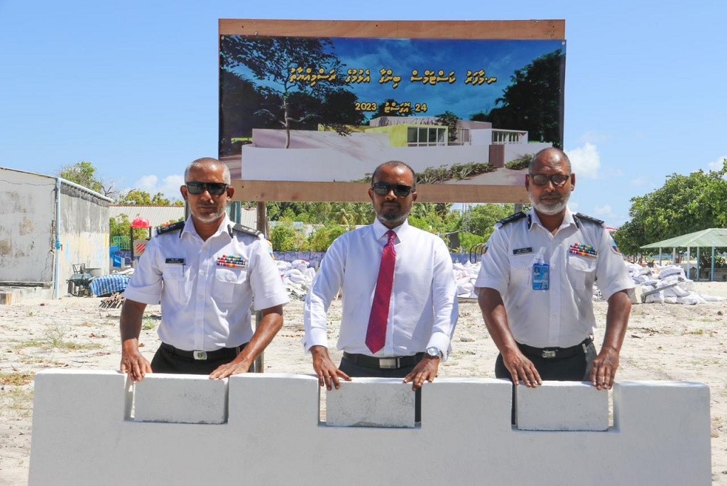 The stone was placed by Commissioner General of Customs Abdulla Shareef, MP for Manadhoo constituency Ahmed Haroon and Deputy Commissioner of Customs Mahmood Riyaz.