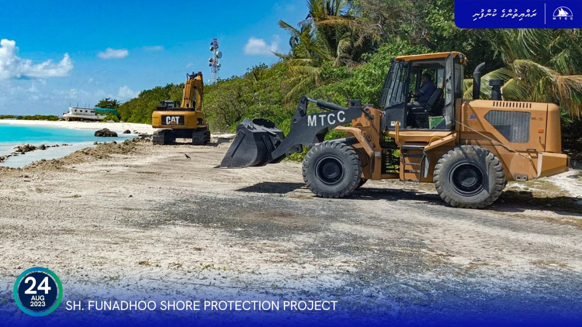 Maldives Transport and Contracting Company (MTCC) has commenced physical work for the Shore Protection Project of Funadhoo Island in Shaviyani Atoll.