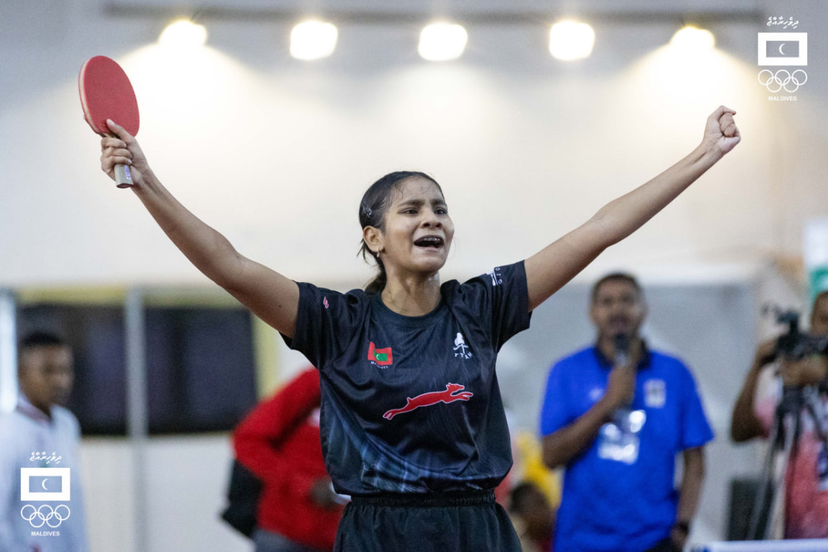 ގައުމީ އަންހެން ޓީމުން މޮރިޝަސްގެ މައްޗަށް ކުރިހޯދާފައިވަނީ 3-1 ގެ ނަތީޖާއަކުންނެވެ. މިއާއެކު، މިއަހަރުގެ ގޭމްސްގައި ރާއްޖެއަށް އެންމެ ފުރަތަމަ ރަން މެޑަލް ހޯދައިދިން ޓީމަކަށް ވެފައިވަނީ އަންހެން ޓީޓީ ޓީމެވެ. އެންމެ ފަހުން ބޭއްވި މުބާރާތުގައިވެސް ރާއްޖެއިން ރަން މެޑަލް ހޯދާފައިވަނީ ފައިނަލުގައި މޮރިޝަސް ބަލިކުރުމަށްފަހުއެވެ.