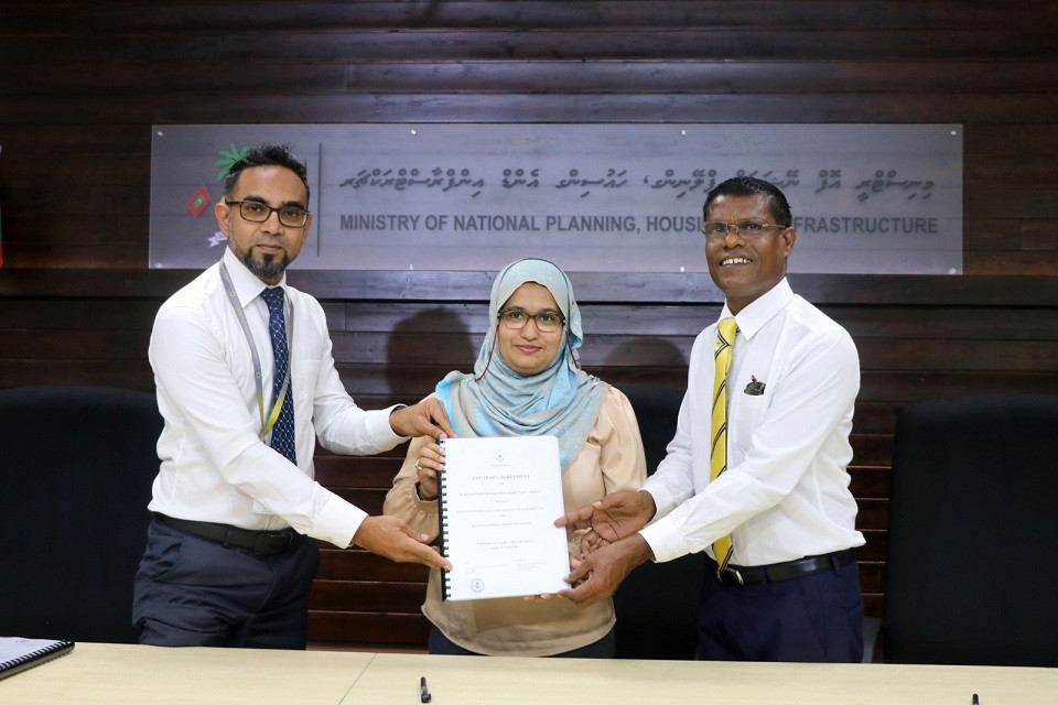 އަންގާރަ ދުވަހު ބޭއްވި ރަސްމިއްޔާތެއްގައި މިނިސްޓްރީ އޮފް ނޭޝަނަލް ޕްލޭނިންގ، ހައުސިންގ އެންޑް އިންފްރާސްޓްރަކްޗާގެ ފަރާތުން މި މަޝްރޫއުގެ އެއްބަސްވުމުގައި ސޮއި ކުރެއްވީ އެ މިނިސްޓްރީގެ ޑިރެކްޓަރ ޖެނެރަލް ފާތިމަތު ޝާނާ ފާރޫގެވެ. އަދި އާރުޑީސީގެ ފަރާތުން ސޮއި ކުރެއްވީ އެ ކުންފުނިގެ ޖެނެރަލް މެނޭޖަރު ހަސަން ސައީދުއެވެ.