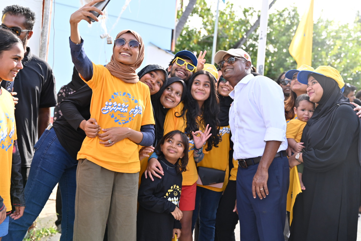 ރައީސު ކެމްޕޭނުގައި ސަޕޯޓަރުންނާއެކު ސެލްފީއެއް ނަންގަވަނީ