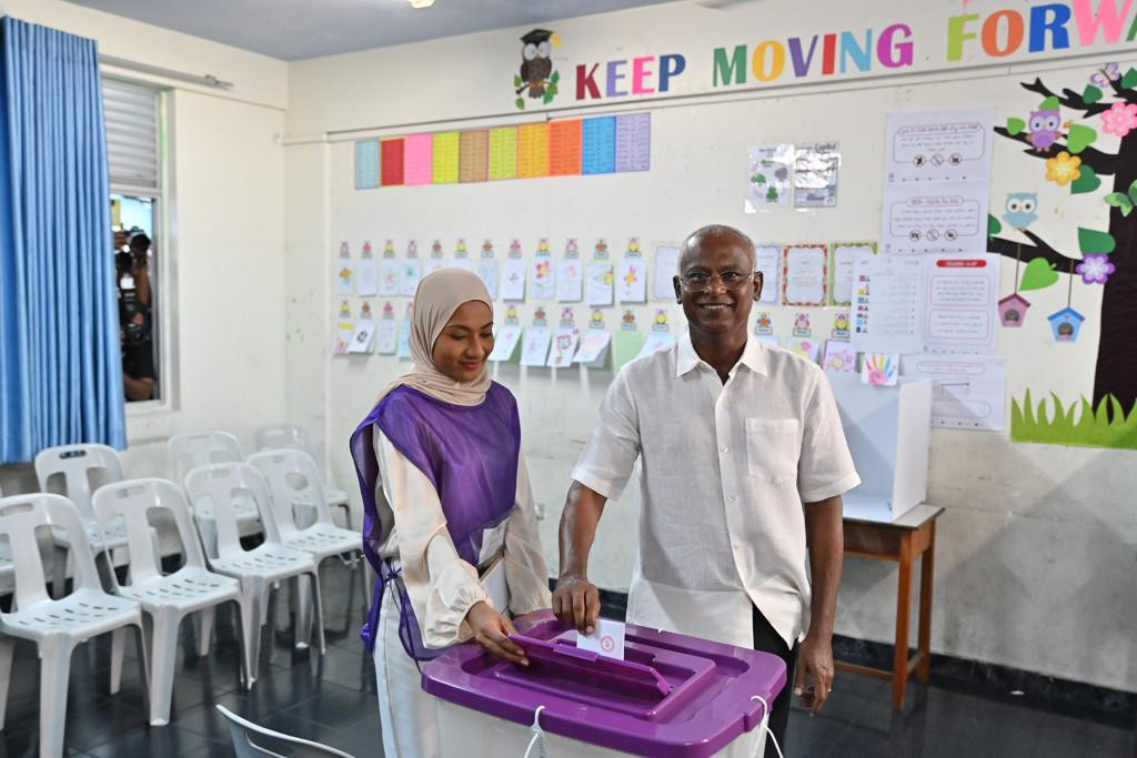 The Maldivian leader, who is aspiring to be re-elected for a second term and endorsed by the ruling Maldivian Democratic Party (MDP), cast his vote at the ballot box stationed at Jamaluddin School for residents of Hinnavaru island of Lhaviyani atoll, his home island.