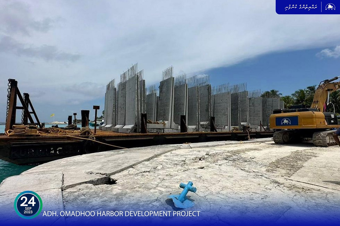 Maldives Transport and Contracting Company (MTCC) has disclosed that the Harbor Development Project of Omadhoo Island in Alif Dhaalu Atoll, is well underway.
