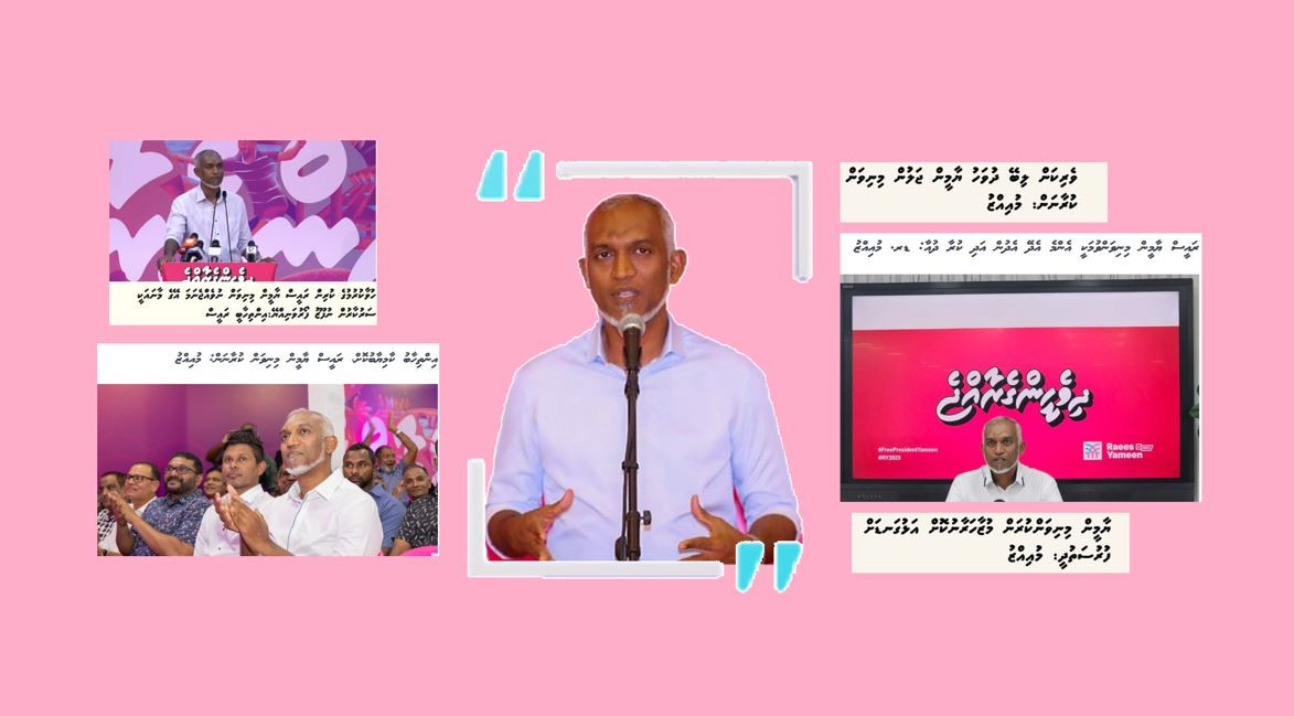 ކަން އެހެން އޮއްވާ ދެން ލައިގަތީ ރިޔާސީ އިންތިޚާބެވެ. ޕީޕީއެމްގެ ޓިކެޓް ޔާމީން ނޫން އެހެން މީހަކަށް ނުދޭން ހިފާފައި އޮތެއްކަމަކު ކޮންމެވެސް މީހަކު ވެރިކަމަށް ނުނެރެ ވެސް ވާކަށް ނެތެވެ. ގޮތް ހުސްވެ ފަހު ގޮޅިއަކަށްވީ ޕީއެންސީން މީހަކު ވެރިކަމަށް ނެރުމެވެ. އެ ފުރުސަތުގެ ބޭނުން ހިތްޕެވީ މިހާރުގެ އިންތިޚާބީ ރައީސް ޑރ.މުހައްމަދު މުއިއްޒެވެ.
