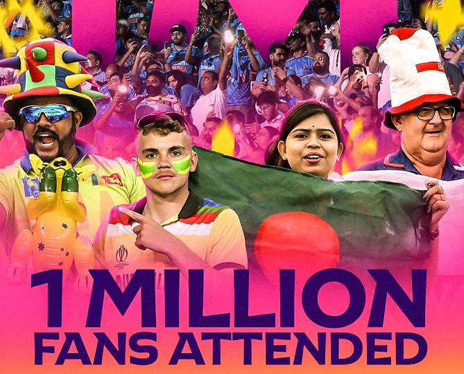 އިންޑިޔާގައި ކުރިއަށްދާ ކްރިކެޓް ވޯލްޑްކަޕް ބަލަން މިހާތަނަށް އެއް މިލިއަން މީހުން ސްޓޭޑިއަމްތަކަށް ވަދެފި ކަމަށް ތަފާސް ހިސާބުތަކުން ދައްކައިފި އެވެ.