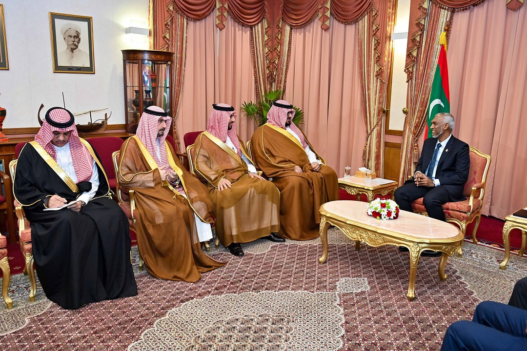 The discussions were held during the courtesy call of the Special Envoy from the King of Saudi Arabia, Minister of Economy and Planning of Saudi Arabia, aisal bin Fadhil Alibrahim, on President Dr. Mohamed Muizzu.