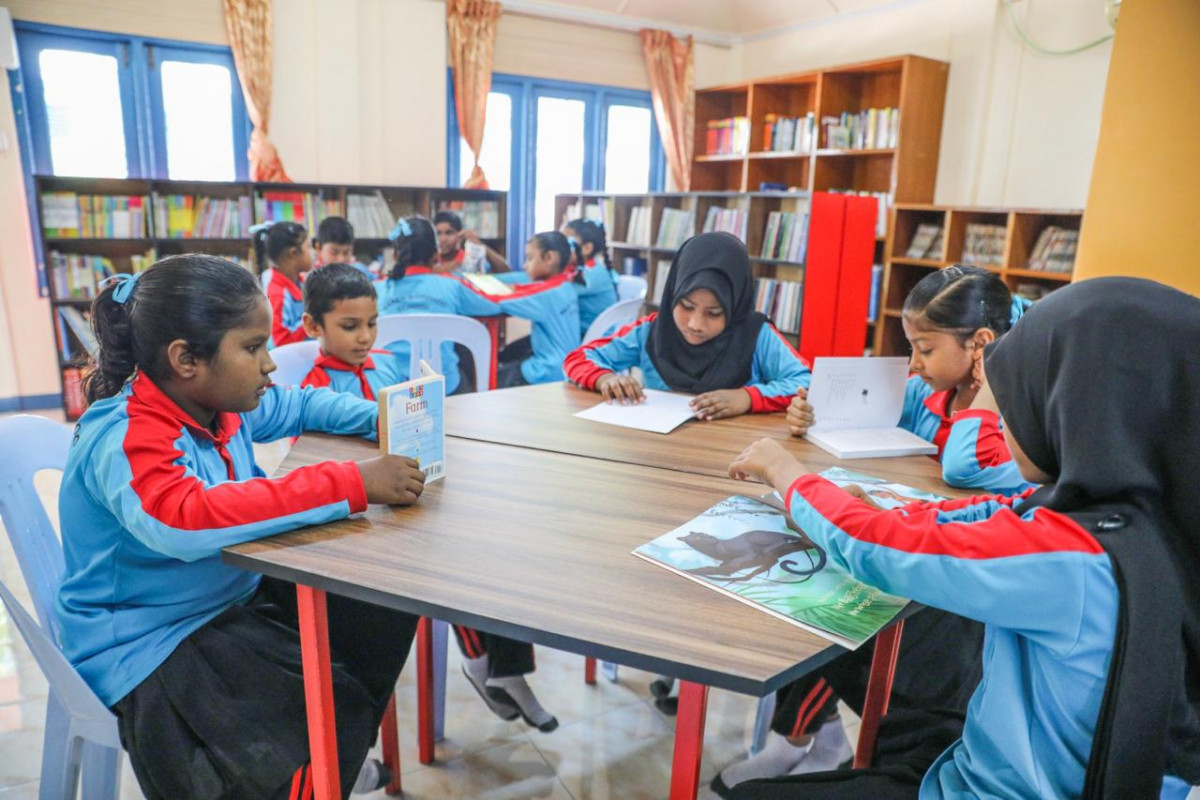 ސްކޫލް ކުދިންތަކެއް ލައިބްރަރީގައި ފޮތް ކިޔަނީ