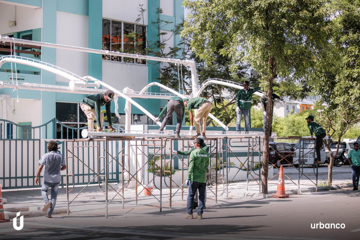 ރެހެންދި ސްކޫލްގެ ބޭރުގައި ބެލެނިވެރިން އާންމުކޮށް މަޑޮކޮށްގެން ތިބޭ ސަރަހައްދު ހިޔާކުރަމަށް ކެނޮޕީއެއް ހެދުމުގެ މަސައްކަތް އަރބަންކޯއިން ފަށައިފިއެވެ.