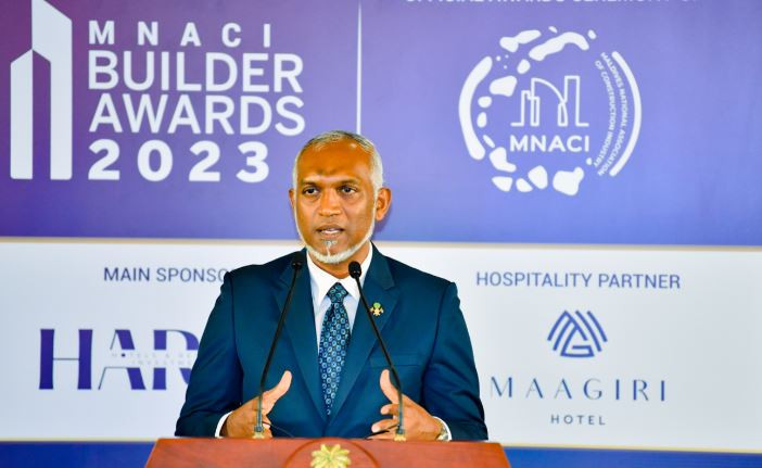 ކޮންސްޓްރަކްޝަން އިންޑަސްޓްރީ އެވޯޑް ދެއްވުމުގެ ޙަފްލާގައި ރައީސުލްޖުމްހޫރިއްޔާ ޑޮކްޓަރ މުޙައްމަދު މުޢިއްޒު ވާހަކަދައްކަވަނީ