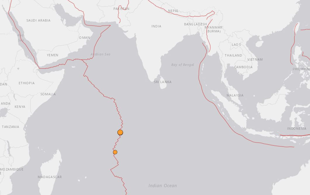 ޔޫއެސް ޖިއޯލޮޖިކަލް ސަރވޭއިން ބުނެފައިވަނީ ފުރަތަމަ ބިންހެލުން އައިސްފައިވަނި މިޑް އިންޑިއަން ރިޖަށް ދަންވަރު 3:37 ހާއިރު ކަމަށާއި، އެއީ 4.8 މެގްނިޓިއުޑްގެ ބިންހެލުމެއް ކަމަށެވެ. ދެވަނަ ބިންހެލުން އައިސްފައިވަނީ ފަތިހު 5:38 ގައި ކަމަށެވެ. އެއީ 5.2 މެގްނިޓިއުޑްގެ ބިންހެލުމެކެވެ.