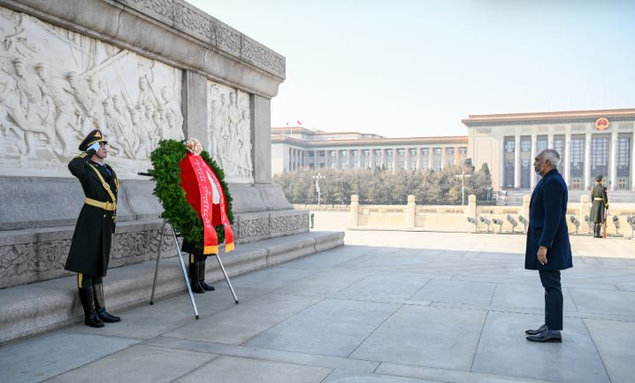 މި ރަސްމިއްޔާތުގައި ޗައިނާގެ މިލިޓަރީ ބޭންޑުން ޗައިނާ އާއި ދިވެހިރާއްޖޭގެ ޤައުމީ ސަލާމް ވަނީ ކުޅެފައެވެ. މޮނިއުމެންޓް ޓު ދަ ޕީޕަލްސް ހީރޯސްގައި މާ ބޮނޑި ބޭއްވުމަށްފަހު ރައީސުލްޖުމްހޫރިއްޔާ ވަނީ ޗައިނާއަށް މިނިވަންކަން ހޯދައިދިނުމަށް ފުރާނައިން ޤުރުބާންވި އަބްޠާލުންގެ ހަނދާނުގައި ހަމަހިމޭންކަމުގެ ސުކޫތެއްގައި ބައިވެރިވެވަޑައިގަންނަވާފައެވެ.