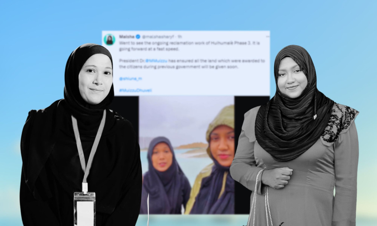 މި ދެބޭފުޅުންނަކީ އަނެއްކާ ވެސް، ޒުވާނުންނާ ބެހޭ ވުޒާރާގެ ނައިބު ވަޒީރުންގެ ގޮތުގައި އައްޔަނުކުރައްވައި، މިހާރު ސަސްޕެންޝަނުގައި ތިއްބެވި މަރިޔަމް ޝިއުނާ އަދި މަލްޝާ ޝަރީފްއެވެ. މި ފަހަރު، މި ދެބޭފުޅުން ތިއްބެވީ ދެވަނަ ފިޔަވަހީގެ މިހާރު ހިއްކަމުންދާ ބައިގެ ތެރޭގައިއެވެ. ބޯ ވިއްސާރައިގެ ތެރޭގައިއެވެ. އެތަނުގައި އެބޭފުޅުންނާއެކު މި ސަރުކާރުގެ އެހެން އެކްޓްވިސްޓުންތަކެއް ގޮސް ސަރުކާރު ޕްރޮމޯޓްކުރައްވަނީއެވެ. ޗައިނާގައި ޗުއްޓީ ހޭދަކުރައްވަން ވަޑައިގެންނެވި ރައީސް މުއިއްޒުގެ ސަރުކާރުގެ އެވެނި ކަމެކޭ، މިވެނި ކަމެކޭ ވިދާޅުވަމުންނެވެ.