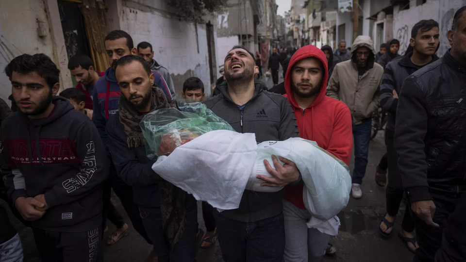 ޣައްޒާގެ ދެކުނުގައި އޮންނަ ރަފަހުގައި އިސްރާއީލުން ދިން ބޮމުގެ ހަމަލާއެއްގައި ޝަހީދުވި އޭނާގެ އަންހެން ދަރިފުޅު މާސާގެ ހަށިގަނޑު، މުހައްމަދު ޝައުމާން އުފުލަނީ