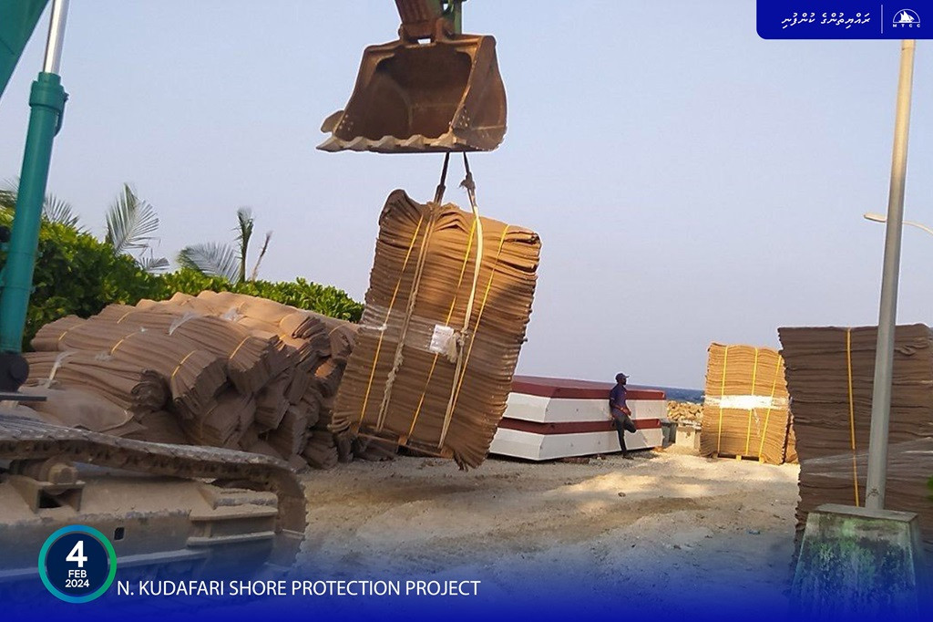 The shore protection project initiated in Kudafari island of Noonu atoll is progressing well.
