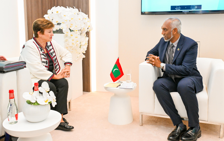 ރައީސް ޑރ. މުޙައްމަދު މުއިއްޒު އަދި އިންޓަރނޭޝަނަލް މަނިޓަރީ ފަންޑް (އައިއެމްއެފް)ގެ މެނޭޖިން ޑިރެކްޓަރު ކްރިސްޓަލީނާ ޖޯޖީވާ ބައްދަލުކުރެއްވުން