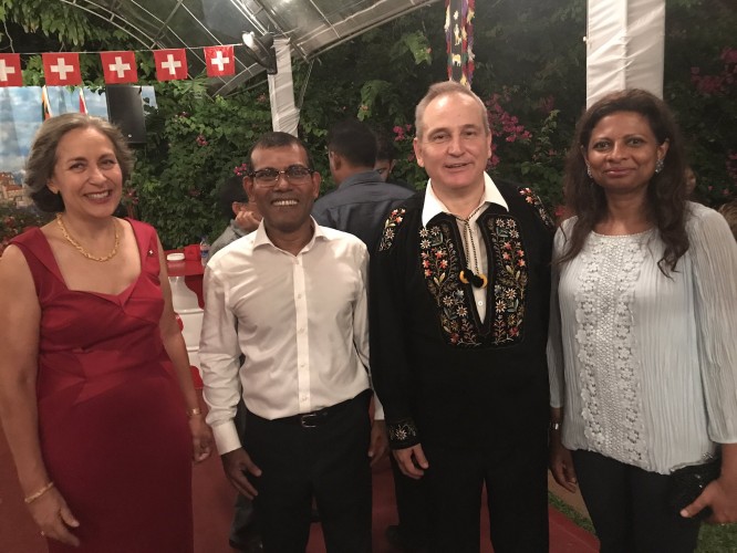 ސުވިޒަލޭންޑުގެ ޤައުމީ ދުވަސް ފާހަގަކުރުމަށް ލަންކާގައި ބޭއްވި ހަފްލާގައި ކުރީގެ ރައީސް މުޙައްމަދު ނަޝީދާއި އަނބިކަނބަލުން ލައިލާ އަލީ ބައިވެރިވެވަޑައިގެންފިއެވެ.