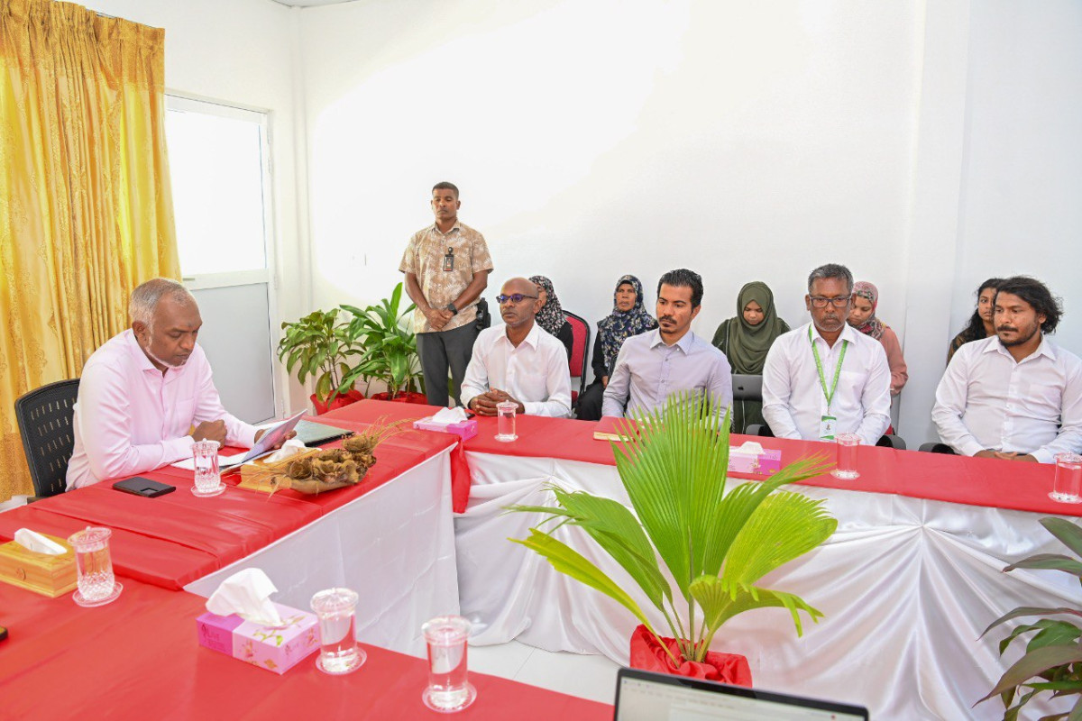 އާދިއްތަ ދުވަހު ރައީސް މުއިއްޒު ވަނީ ފިއްލަދޫ ކައުންސިލާ ބައްދަލުކުރައްވައި ރަށުގެ ތަރައްގީއަށް ބޭނުންވާ ކަންކަމާ ބެހޭގޮތުން މަޝްވަރާ ކުރައްވާފައެވެ.