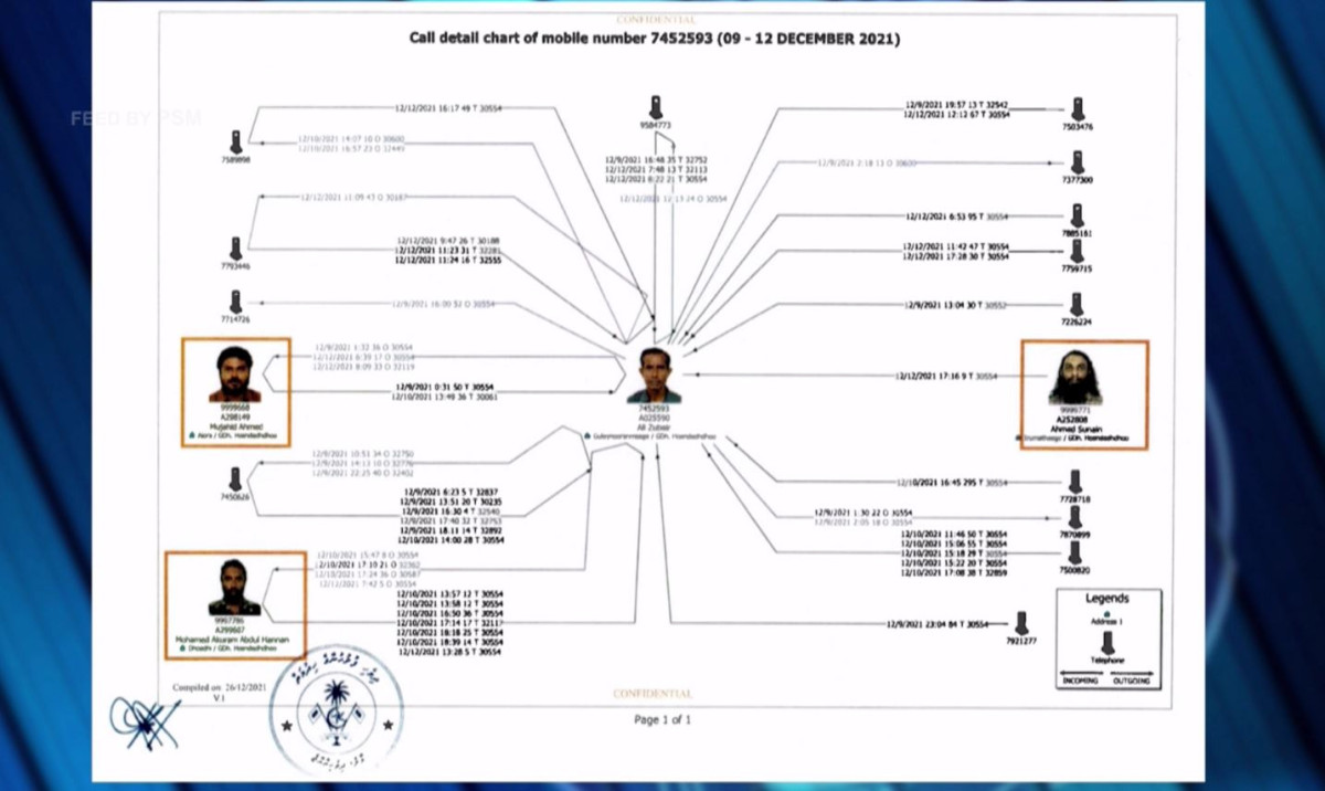 މި މައްސަލައިގައިވެސް މަސްތުވާތަކެތި އުފުލި ގޮތާއި، ތުހުމަތުވާ މީހުންގެ އަމަލުތައް ހުރި ގޮތް "އަލިފުން ޔާއަށް" ވީޑިއޯ ފުޓޭޖުތަކުން ދައްކާފައިވެއެވެ. މައްސަަލައިގެ ކޯލް ޑީޓެއިލް ޗާޓުތަކަށް ދާންދެން ދައްކާލިއެވެ.