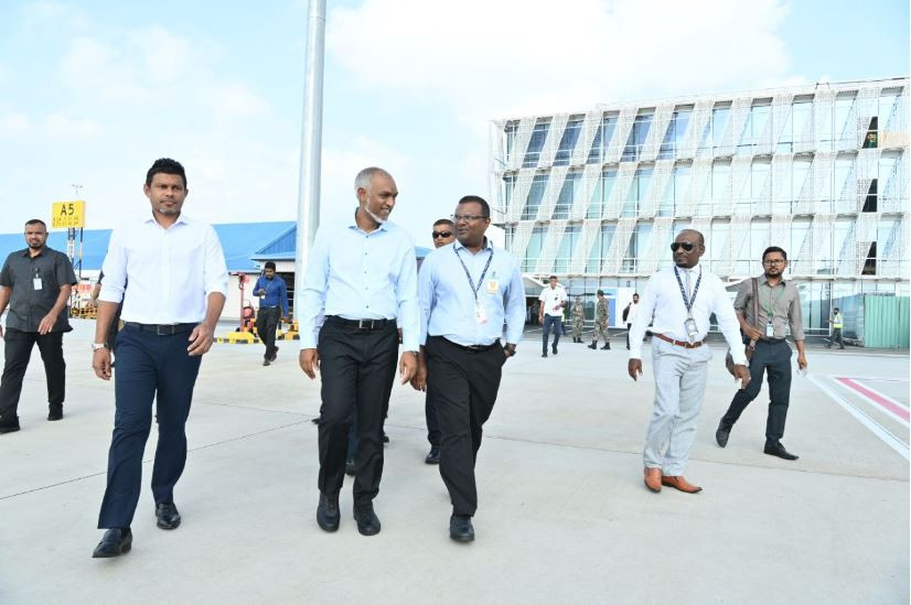 The president departed on the tour of several islands in Laamu atoll, from Velana International Airport (VIA) on Thursday morning.