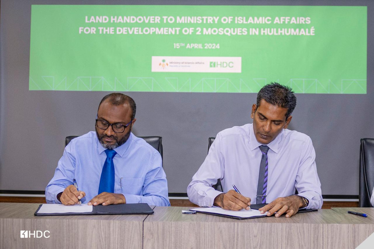 The agreement to handover the plots of land, was signed by Managing Director Ibrahim Fazul Rasheed on behalf of HDC and Minister of Islamic Affairs Dr. Mohamed Shaheem Ali Saeed on behalf of the government.