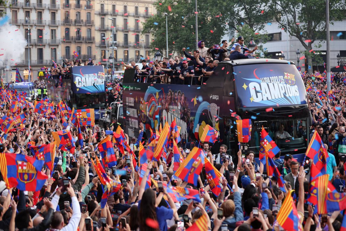 ބާސެލޯނާ އިން ސްޕެނިޝް ލީގު ކާމިޔާބުވުމުގެ އުފާ ފާޅުކުރަނީ